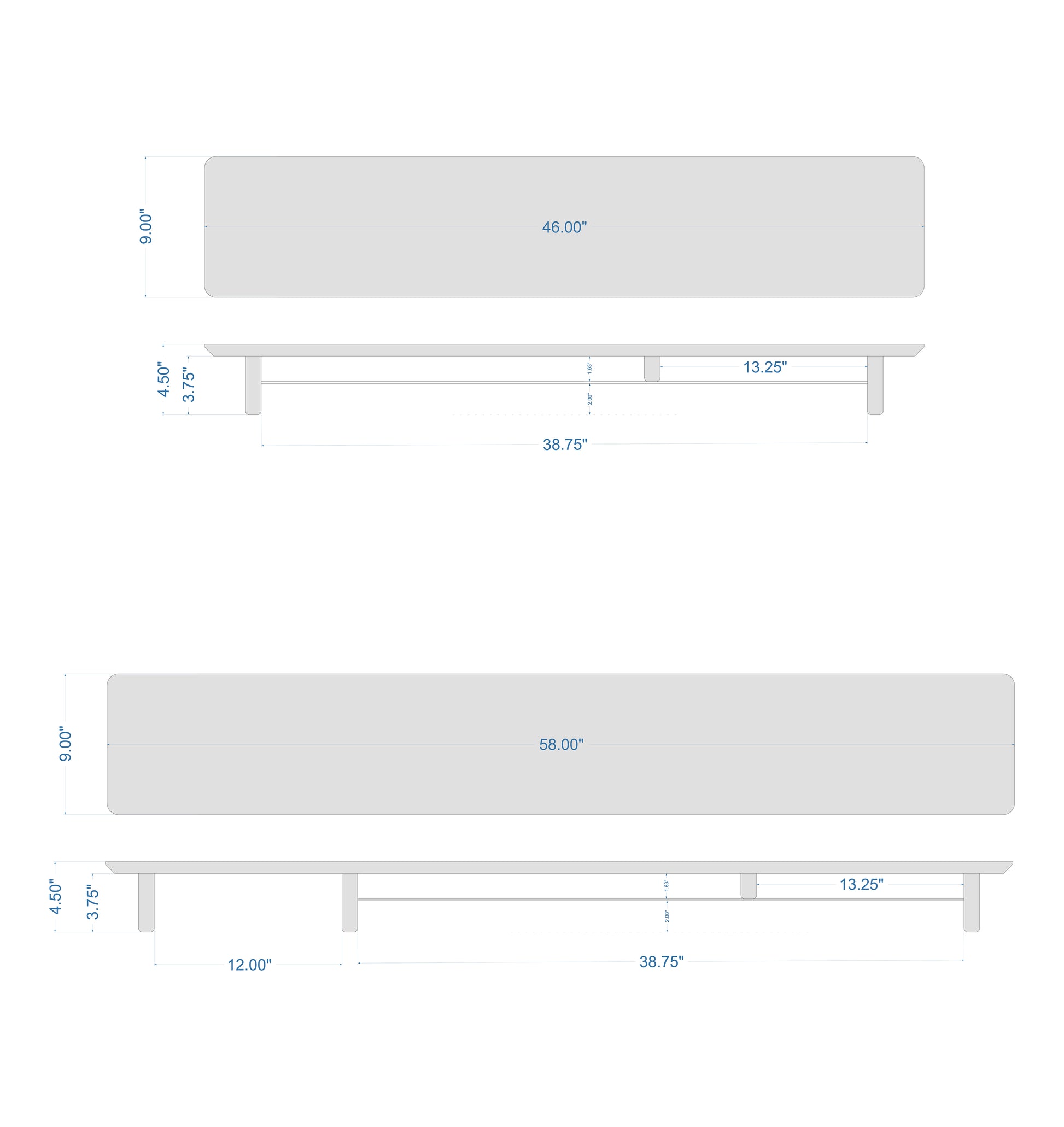 • L X W X H - 46'' x 9'' x 4.5''